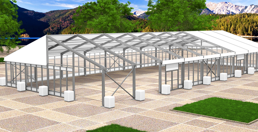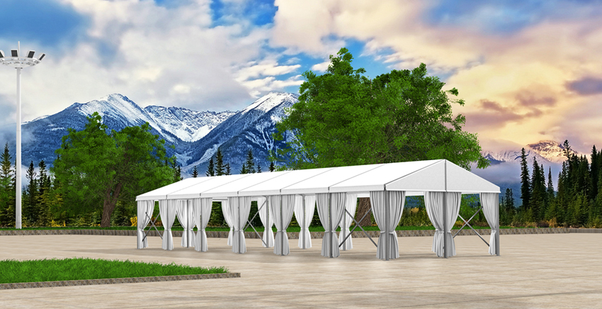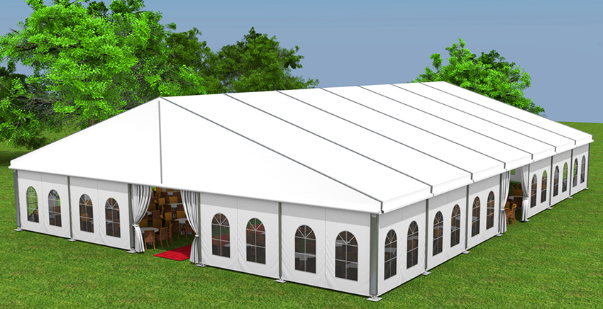 屋脊篷房系列品種繁多,提供從6米到50米的多種跨度。屋脊篷房采用模塊化設計,篷房長度可按3米或者5米的倍數延長。屋脊篷房采用高強度鋁合金型材(6061-T6)作為主框架,外圍采用PVC刀刮涂層布做圍擋。此外,屋脊篷房高適應性的特點,可以讓它融入各種建筑特色,也可以與同類產品,如:如尖頂篷房、多邊型篷房等組合使用。