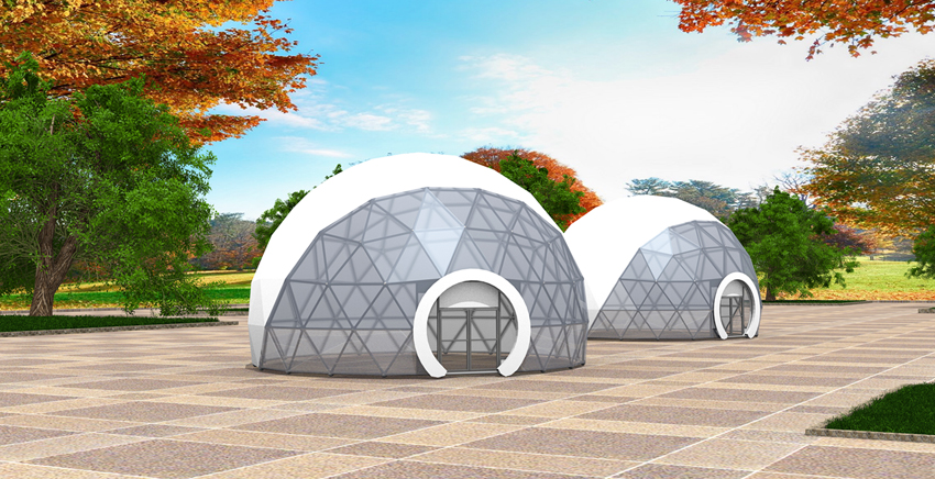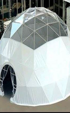 球型篷房小直徑4米,大直徑可達(dá)40米,采用的是球面網(wǎng)殼架構(gòu), 網(wǎng)殼是一種曲面型空間網(wǎng)格結(jié)構(gòu),兼具網(wǎng)架結(jié)構(gòu)和薄殼結(jié)構(gòu)的特點(diǎn),用材省,但受力性能相當(dāng)好,安全系數(shù)高,而且外形美觀、富于變化。