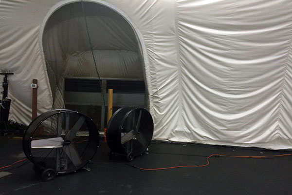 一般配備兩臺(tái)主風(fēng)機(jī),室內(nèi)需要新風(fēng)時(shí),兩臺(tái)風(fēng)機(jī)同時(shí)運(yùn)轉(zhuǎn),保證新風(fēng)量的供應(yīng),滿足室內(nèi)人員呼吸新鮮空氣的需要;室內(nèi)沒(méi)有人活動(dòng)時(shí),只開(kāi)一臺(tái)主風(fēng)機(jī),提供足夠的內(nèi)外氣壓差,保證氣膜建筑正常工作,同時(shí),為用戶盡量節(jié)省電能。另外配備一臺(tái)備用風(fēng)機(jī),當(dāng)主風(fēng)機(jī)發(fā)生故障時(shí),啟動(dòng)備用風(fēng)機(jī)。