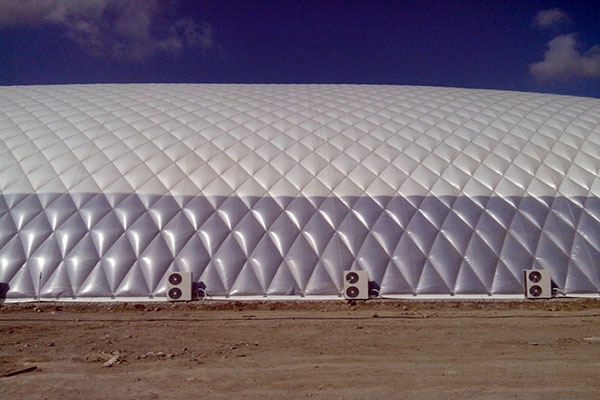 據用戶對制冷、供暖的不同需要和氣膜建筑面積的大小,靈活配備中央空調系統或者分體空調系統,北方地區還可以利用地熱、用鍋爐自燒熱水等方式供暖。