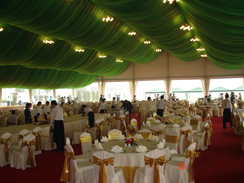 在保證篷房安全、不損壞篷房框架的基礎(chǔ)上,客戶是可以根據(jù)需求進(jìn)行個(gè)性化裝飾的。高山篷房的篷房裝飾規(guī)格多樣,樣式新穎。同時(shí)還提供一些篷內(nèi)天花裝飾布幔、彩鋼硬體墻、活動(dòng)玻璃門、家具、空調(diào)、地板、地毯和舞臺(tái)燈光音響等配套的租賃,一站式的租賃服務(wù)為您省心省力。篷房租賃