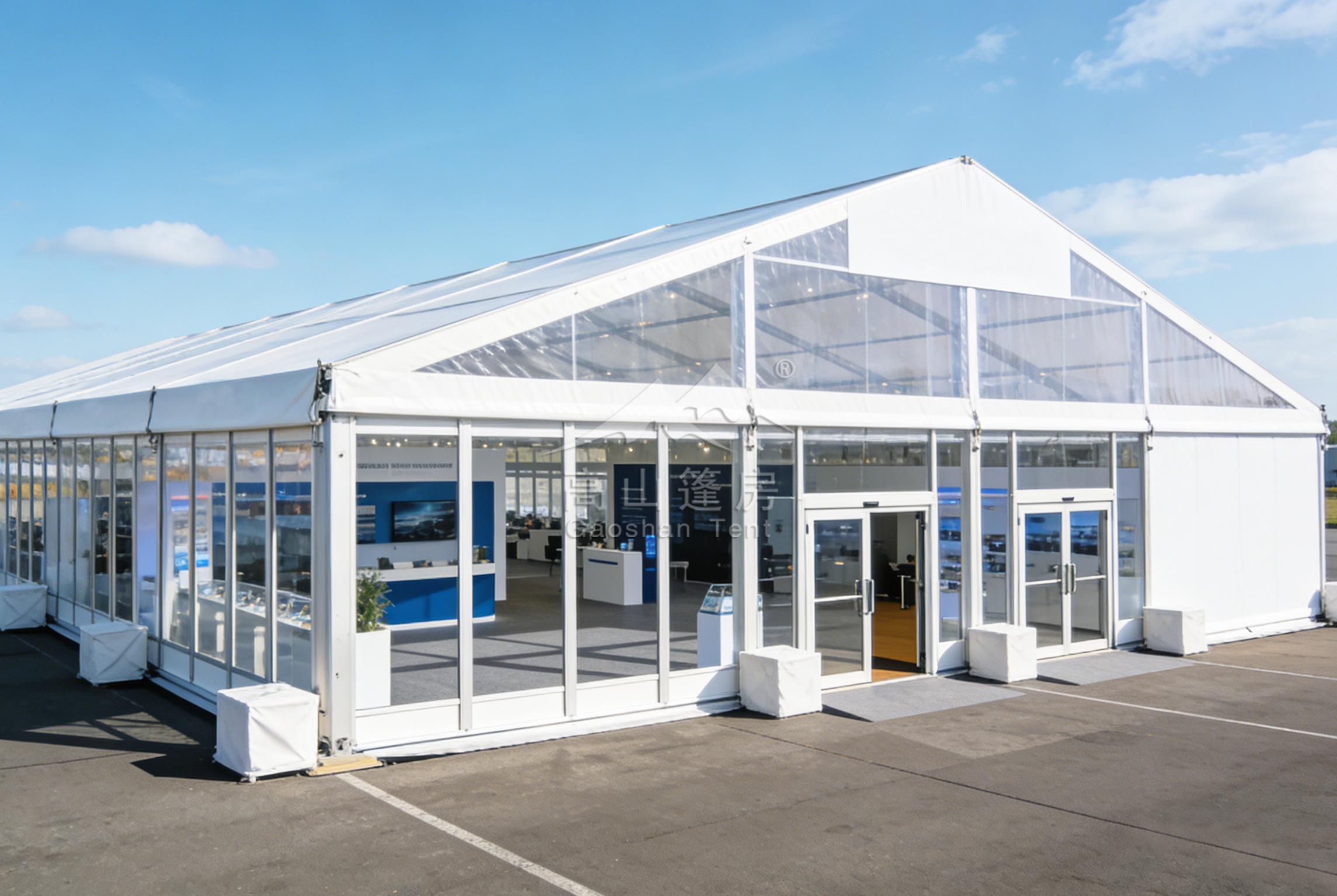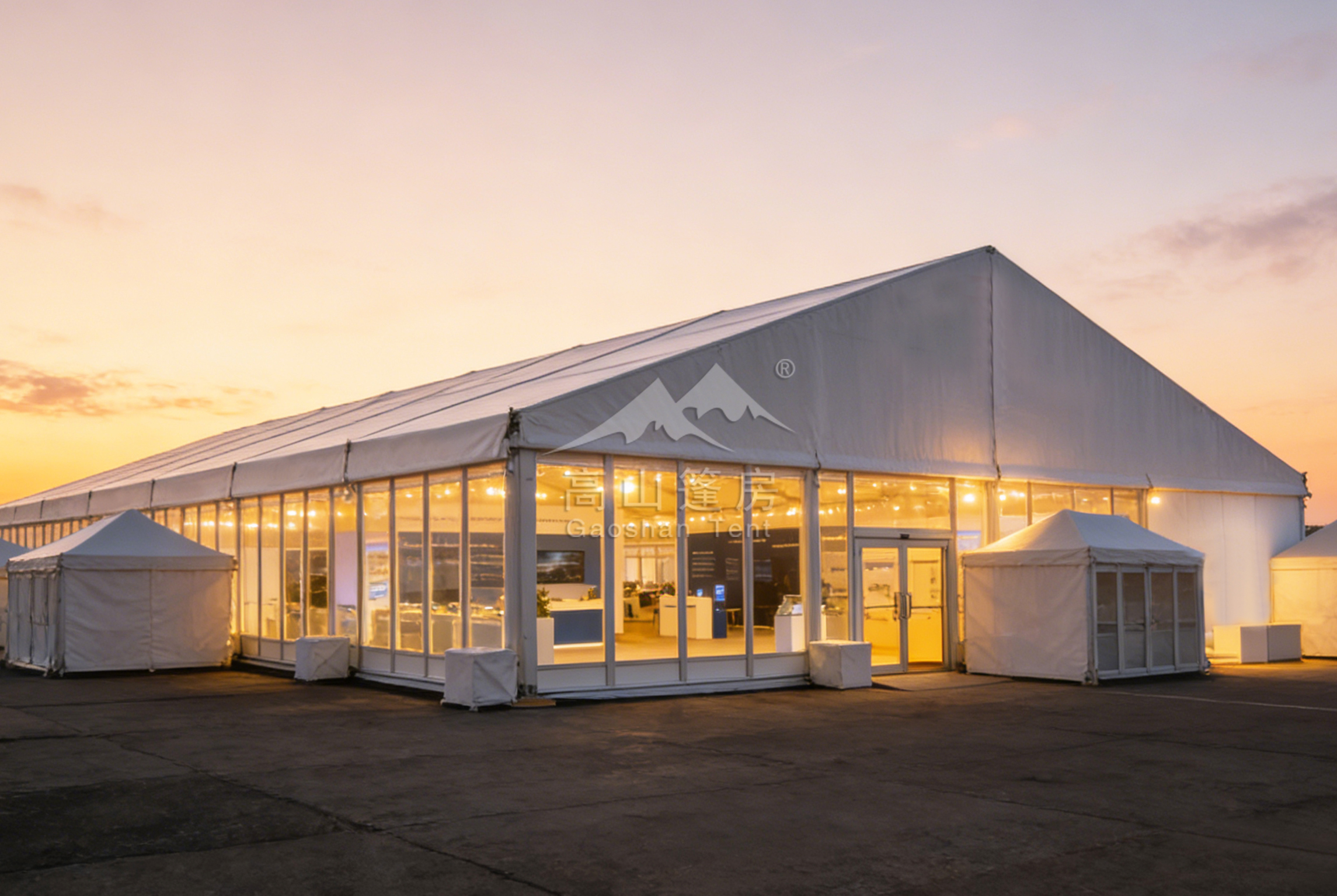 高山篷房的核心價值在于絕對的可靠性。高強度鋁合金框架與優質的篷布材料,能從容應對風雨等惡劣天氣,保障活動在任何條件下都能如期、順利舉行。同時,我們提供包括空調、照明、地板、內飾在內的全套配套設施服務,實現“交鑰匙”式交付,讓您無需為繁瑣的搭建細節分心,全心專注于活動本身。