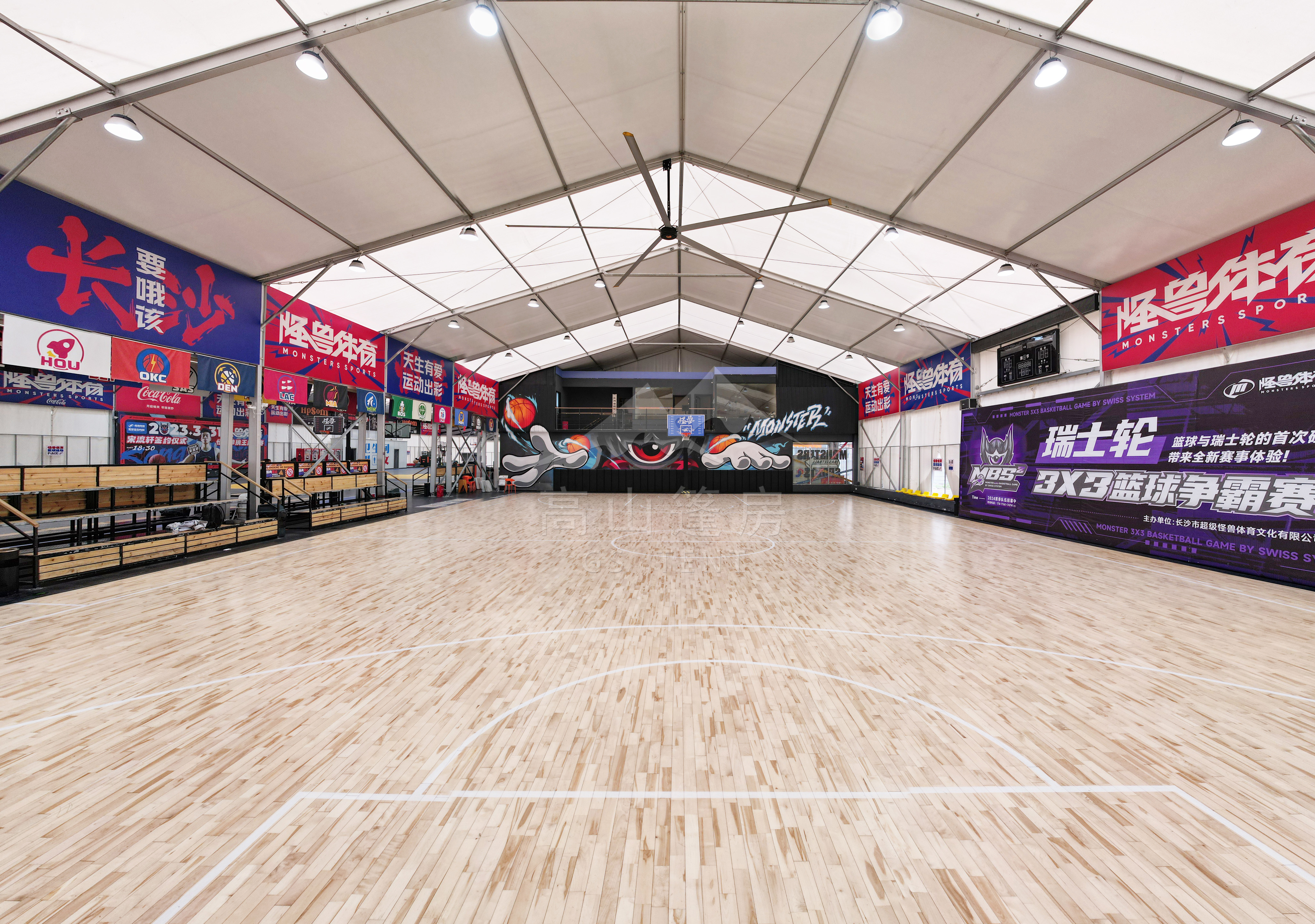篷房內部采用無柱大跨度結構,最大跨度可達60米,超大空間利用率,視野開闊無遮擋。長度可按需求無限延伸,輕松容納籃球、羽毛球、游泳館等不同運動項目。同時,篷房支持快速功能切換:上午舉辦籃球賽,下午撤除設備即可變身羽毛球館或文藝演出場地,實現“一館多用”。