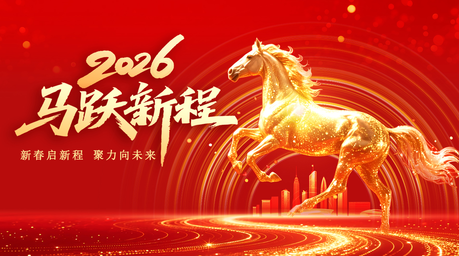 新春的鐘聲是再出發(fā)的號角。讓我們以龍馬精神砥礪前行,以金馬踏雪的姿態(tài)開拓新局!愿新的一年,我們繼續(xù)同心同德,共創(chuàng)錦繡前程!