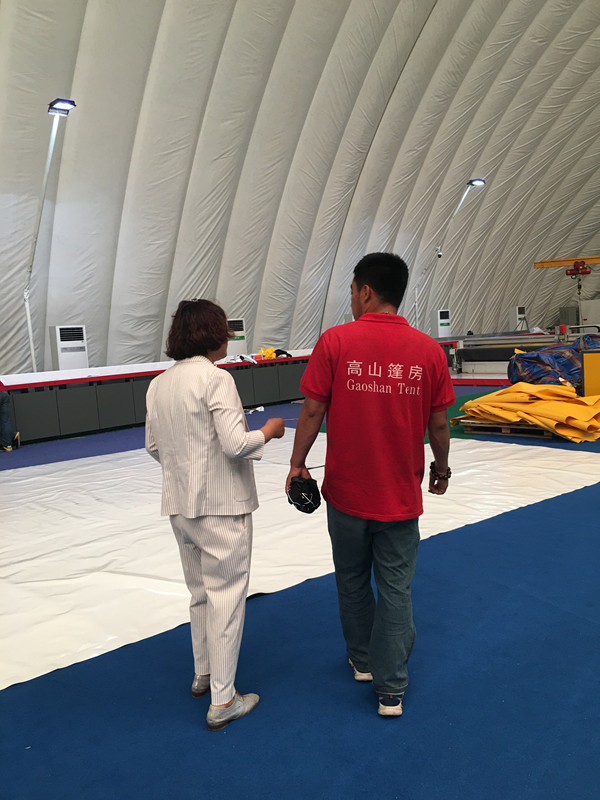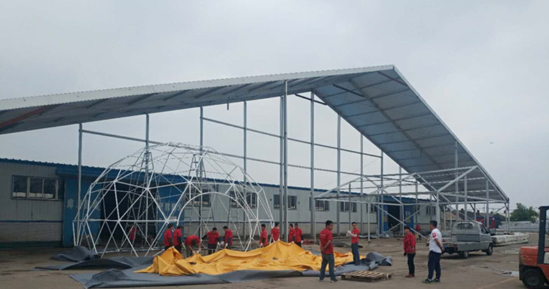 原來(lái),每一個(gè)項(xiàng)目在交給客戶之前,都必須進(jìn)行篷房的試搭工作,在試搭的過(guò)程中需檢驗(yàn)產(chǎn)品的質(zhì)量是否過(guò)關(guān)、搭建技術(shù)是否過(guò)硬,經(jīng)檢驗(yàn)合格后方可交到客戶手上。