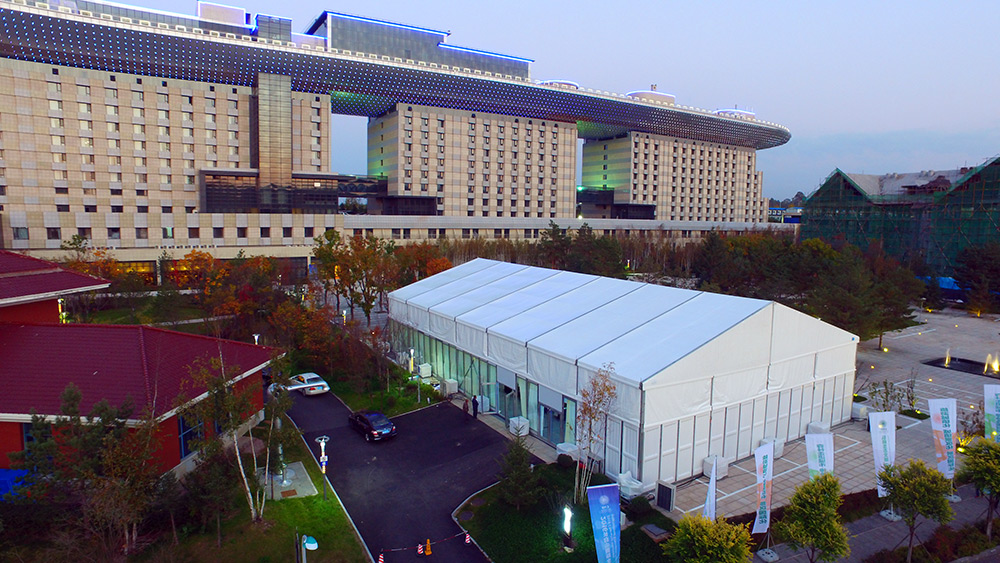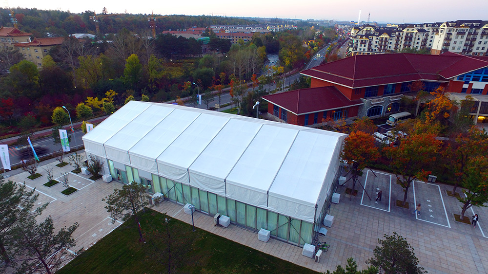 也可以采用篷房與固定建筑相結(jié)合的方式,通過(guò)使用篷房,解決現(xiàn)有空間不足的問(wèn)題。例如篷房出入口,來(lái)賓通道,附屬?gòu)N房,化妝室等場(chǎng)景。