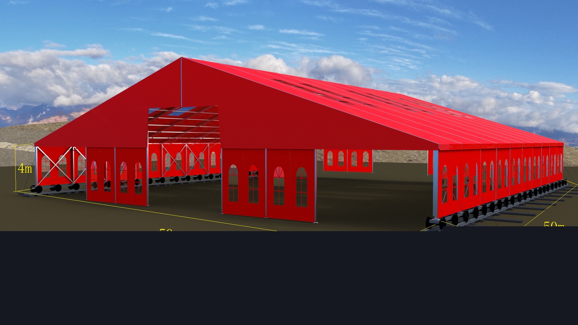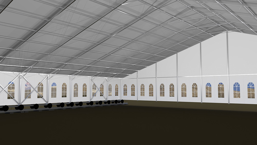 這種篷房建筑,高強(qiáng)度鋁合金結(jié)構(gòu),抗風(fēng)能力,載雪能力很強(qiáng)。根據(jù)國家要求,必須是可移動結(jié)構(gòu),工程師們根據(jù)參數(shù)要求,采用礦輪承載方式,一座篷房建筑鋪設(shè)了兩條鐵軌的方式,實(shí)現(xiàn)了這個要求,國家環(huán)保部門,國土資源部門同時通過驗(yàn)收。