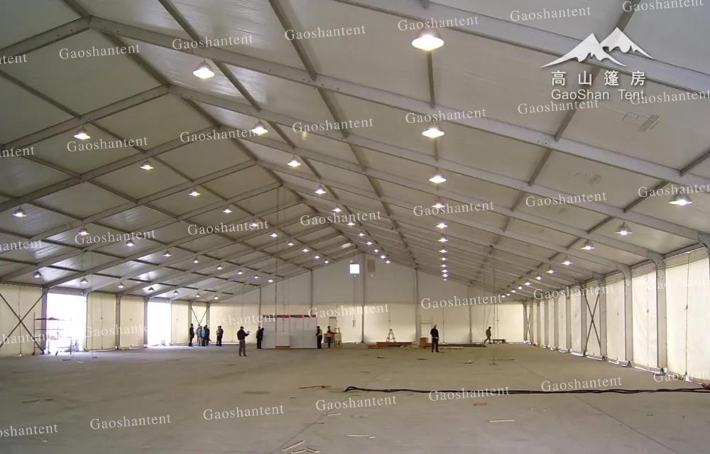 現階段工業生產倉儲帳篷商品架構鋁型材均選用高品質鋁合金型材材料,具備安全性穩定的特性,可以抵御大風。篷布選用兩面鍍層PVC布,具備抗沖擊防水防雨、防曬隔離阻燃性等特性,使用期限長,因而說不用擔憂工業生產篷房商品的安全及可靠性。